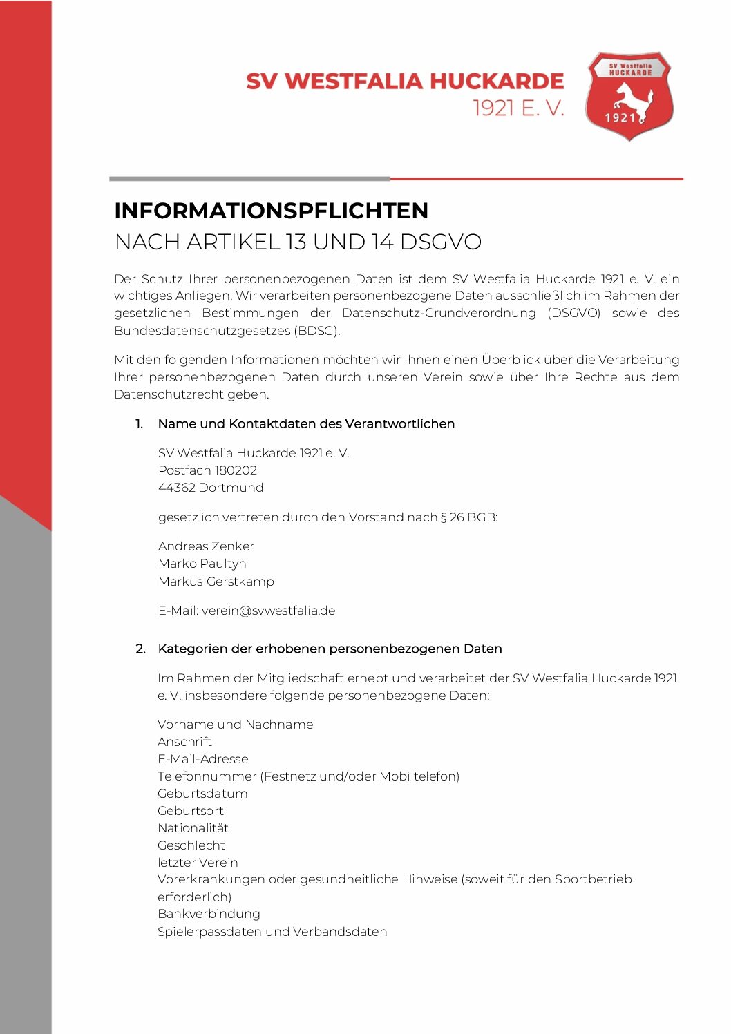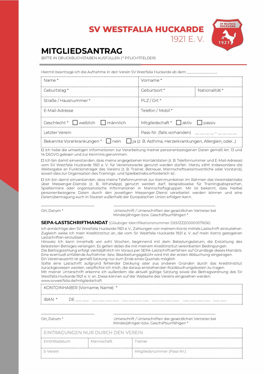 Falls der SV Westfalia Huckarde dein erster Fußballverein ist, benötigst du folgende Unterlagen: